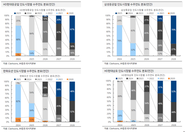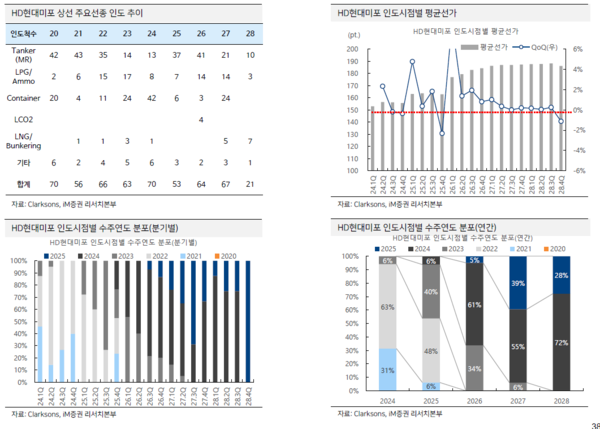 이에 따라 전체 수주잔고 및 선가는 2024년 말 이후 추세적 하락 사이클에 접어든 것으로 판단된다는 것이다. 다만 2026년에는 2025년 대비 발주 회복으로 급격한 하락보다는 약보합을 예상하며, 전년대비 발주 강세가 예상되는 일부 선종(LNG, 탱커)은 강보합 또는 소폭 상승의 가능성 있다고 변 애널리스트는 밝혔다.