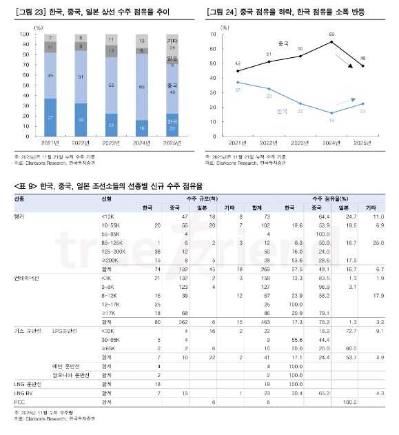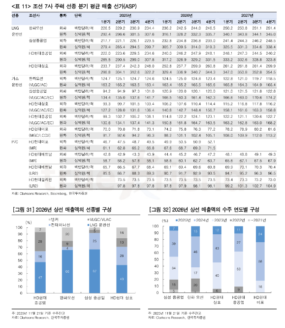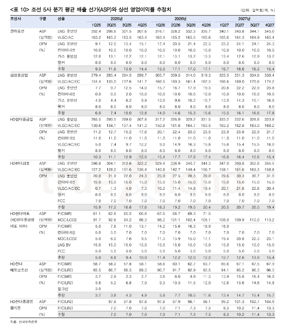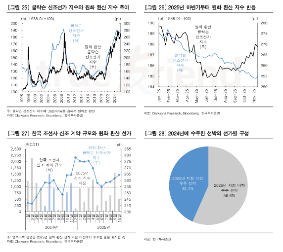 2025년 수주 호선들이 2027년 하반기부터 매출 mix에 본격적으로 잡히기 시작할 때 조선사 상선 영업이익률은 더 나아질 것인가에 대한 고민이 필요한 시점이다. 2026년부터 수주량 납기 수주 호선들의 선가가 반등한다면 이 고민은 자연스럽게 해결될 것으로 보인다.