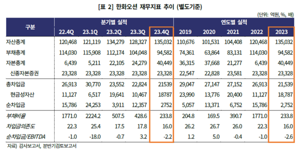 다만 2023년 4분기 1.5조원의 유상증자를 통해 자본이 대거 확충되고 충분한 투자여력이 확보된 점(2023년말 별도기준 부채비율 233.8%, 현금성자산 1.9조원)을 감안하면 투자자금의 자체 충당과 양호한 재무구조의 유지가 가능할 것으로 판단된다.