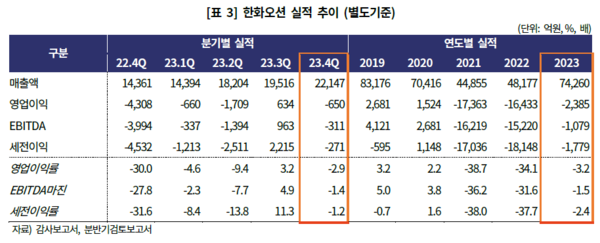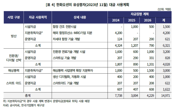 동사의 영업현금창출력을 고려할 때 4,025억원의 투자금액은 적지 않은 규모이나, 2023년 4분기 1.5조원의 유상증자를 통해 자본이 대거 확충되고 충분한 투자여력이 확보된 점(2023년말 별도기준 부채비율 233.8%, 현금성자산 1.9조원)을 감안하면 투자자금의 자체 충당과 양호한 재무구조의 유지가 가능할 것으로 판단된다.