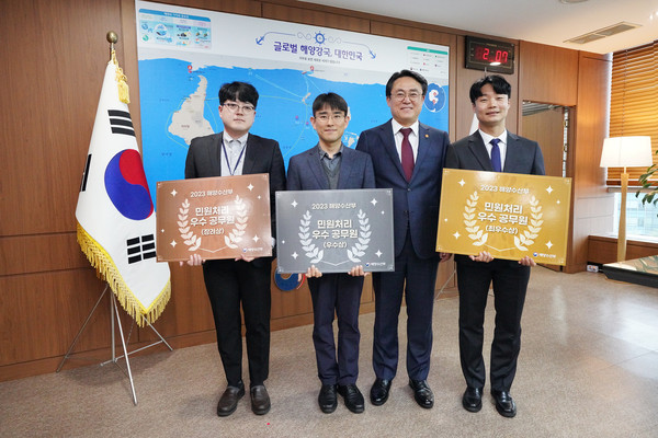 강도형 해양수산부 장관은 4월 15일(월) 정부세종청사에서 ‘2023년도 해양수산부 민원처리 우수공무원’에게 장관상을 수여했다.