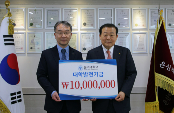 부산시 중구 중앙동에 본사를 둔 은산해운항공(주)이 동의대학교에 대학발전기금 1천만원을 기탁했다.