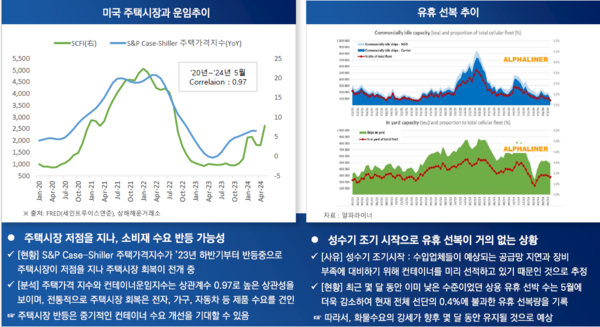 홍해사태로 인한 희망봉 우회, 투입 선복부족 등 단기에 일어난 공급충격은 단기에 해결될 수도 있으나 북미 수요개선, 경기순환 등에 의한 중장기적인 수요증가가 컨테이너운임 상승세를 당분간 견인할 가능성이 높다는 분석이다.