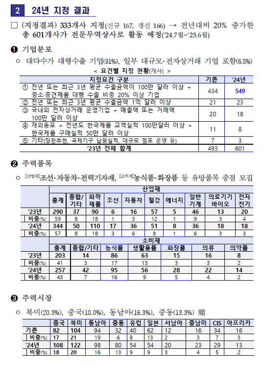 - 「2024년 전문무역상사 지정식」・・・ 전년대비 지정기업 수 20% 확대