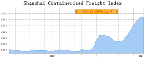 스팟 컨테이너운임 지표 SCFI(상하이발컨운임지수)가 7월 12(금) 마이너스 성장을 해 주목하고 있다. 홍해 사태, 파나마운하 통행제한 그리고 8월 미국 관세를 피하기 위한 중국물량 밀어내기로 급상승세를 이어갔던 SCFI가 급기야 감소세로 전환되면서 업계가 긴장하고 있다.