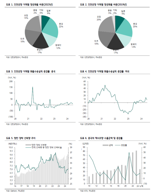 미국의 중국 직구 수요가 꺾일 가능성이 높다. 다만 대한항공의 경우 미국향 화물 매출 비중은 전체 매출액의 10% 미만으로 추정되기 때문에 영향은 제한적이다.