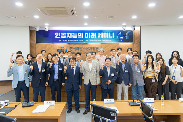 한국해양수산개발원(KMI, 원장 김종덕)은 2024년 7월 19일(금) KMI 6층 컨퍼런스룸에서 '인공지능 미래 세미나'를 개최하였다. 이번 세미나는 인공지능에 대한 인식을 제고하고, KMI의 해양수산분야 인공지능추진 현황 및 미래 전망에 대해 심도 있는 논의를 진행하는 자리였다.