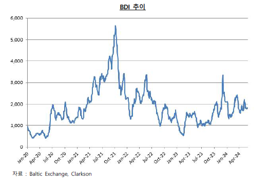 양 수석연구원에 따르면 건화물선운임지수 BDI는 지난해 파나마운하에 이어 수에즈운하까지 양대 운하 문제가 발생하며 4분기 이후 상승 흐름이 나타났으며 상반기 중 이 흐름을 이어갔다.