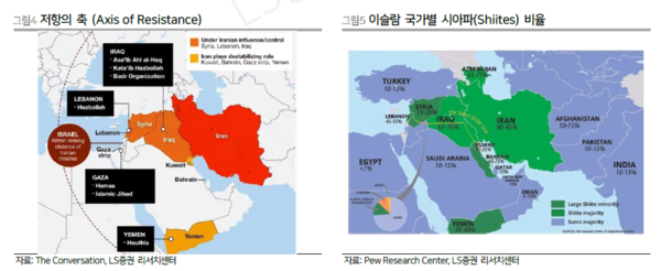Appendix. 홍해 사태를 일으킨 후티반군은 예멘에 근거를 둔 자이드파 조직으로 레바논의 헤즈볼라와 같은 시아파 계열로 분류됨. 예멘은 지도상 수니파 우세지역인 아라비아반도 남부에 위치해있으나 북예멘의 후티반군 장악지역을 중심으로 시아파 세력이 결집해있음. 예멘 내전이 시작된 2014년부터 이번 홍해 테러에 이르기까지 헤즈볼라와 IRGC(이슬람혁명수비대, 이란) 는 후티에 직간접적 군사 지원을 지속 중. 후티는 헤즈볼라, 시리아 등과 함께 이란 주도의 반미·반이스라엘·반서방주의 비공식 군사연맹체인 저항의 축(Axis of Resistance) 에 소속해 있음