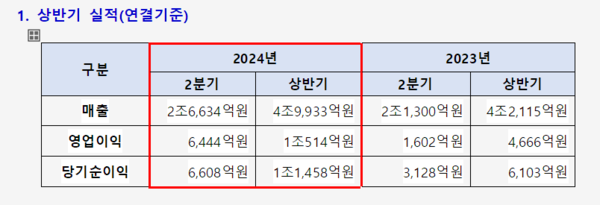 -상반기 매출 4조9,933억, 당기순익 1조1,458억
