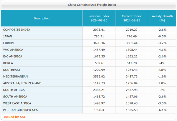 -23일 CCFI는 전주보다 2.6% 내려...2주 연속 하락