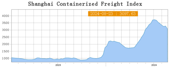 상하이항운교역소에 따르면 스팟 컨운임 지표 SCFI는 23일 3097.63p로 전주(3281.36)보다 183.72p(5.6%) 하락했고, 중장기 계약운임 지표 CCFI는 2019.27p로 전주(2073.41)대비 2.6% 하락한 것으로 집계됐다.
