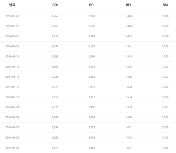 -건화물선운임지수 BDI, 23일 1761p 기록