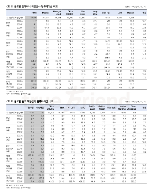 이제는 해운업종은 SCFI나 BDI만으로 평가해선 안된다. 국내 선사들의 2024F PBR은 0.3~06배에 불과할 정도로 소외돼 있어 업사이드 리스크에 더 주의할 필요가 있다.