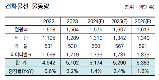 -2024년 건화물선 물동량은 전년 대비 1.4% 증가 예상