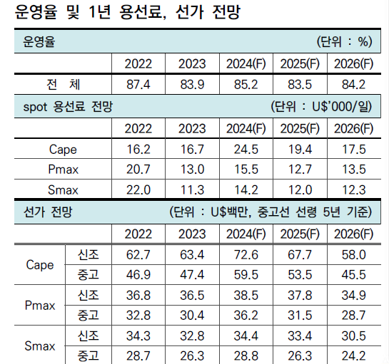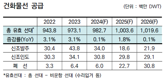 하지만 내년 건화물선 수급 악화 예상에 따른 신조발주 위축으로 인해 ’25년부터 둔화될 전망이다.