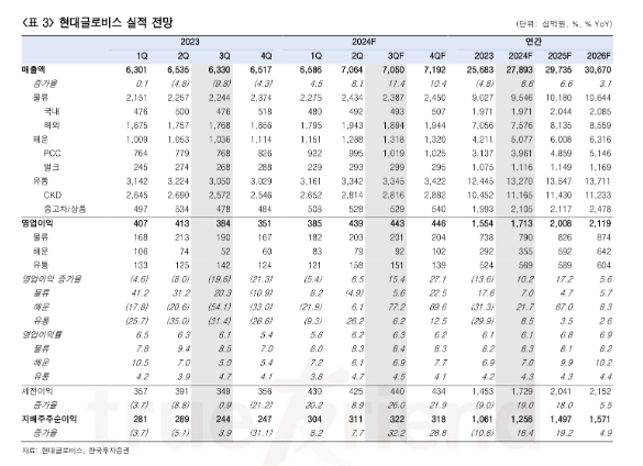 항공화물, PCC, 종합물류 등 전반적인 업황도 좋았고 각각의 영역에서 국내 1위인 이들의 시장 지배력이 강화된 덕분에 해외 피어 대비 더 양호한 수익성을 보여줄 것이란 분석이다.