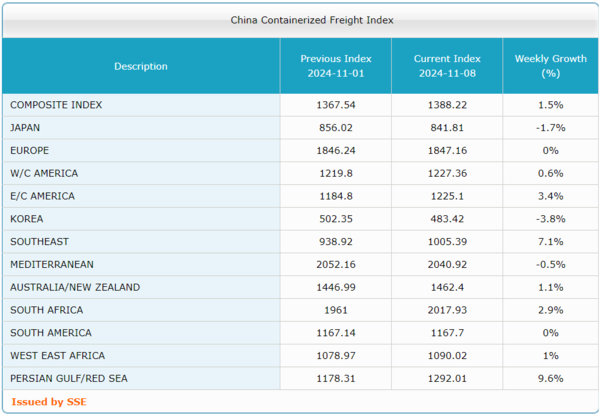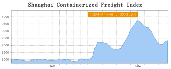 컨테이너운임지수 SCFI(상하이발컨운임지수)와 CCFI(중국발컨운임지수)가 8일 모두 상승했다. 상하이항운교역소에 따르면 8일 SCFI는 2331.58p로 전주(2303.44) 대비 상승폭은 감소했으나 28.14p(1.2%) 올랐고, CCFI는 1.5% 상승해 전주(1367.54)보다 상승폭이 다소 증가했다.