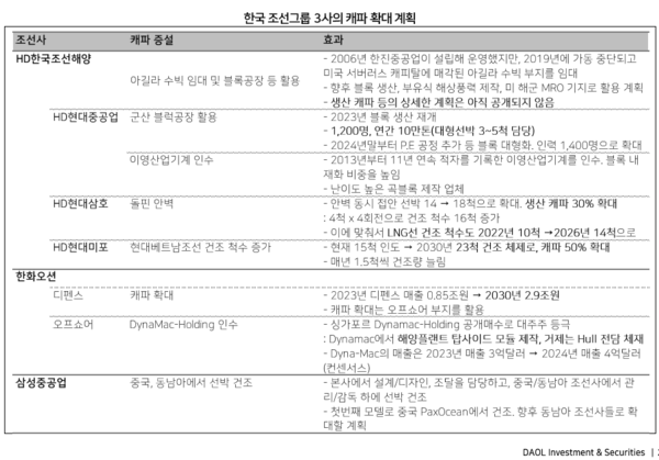 1) 우리 스롯이 비어있고 백로그가 짧아 위기라면 문제이겠지만 2) 선별 수주를 지속하고 있다는 반증이다. 3) 한국의 건조물량은 컨테이너선과 VLCC와 같은 전통 상선에서 가스선으로 변화되고 있어서 외형(조업량) 유지에 문제가 없다. 더구나 가스선은 건조 난니도가 높아 한국 M/S가 높은 고부가가치 선종이며, 따라서 신조선가 상승폭이 더 컸고 마친도 더 좋았다.
