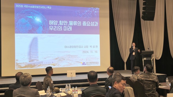 박성현 여수광양항만공사 사장은 지난 11월19일 개최된 제25회 국방수송 물류발전세미나에 초청연사로 참석해 “해양, 항만, 물류의 중요성과 우리의 미래” 라는 주제로 해상물류의 중요성을 전파했다고 밝혔다. 이번 세미나는 국군수송사령부와 한국국방수송물류협회가 주최하는 행사로 첨단기술 연결을 통한 민·관·군 통합 수송물류 발전을 위해 150여명이 참석한 가운데 진행됐다.
