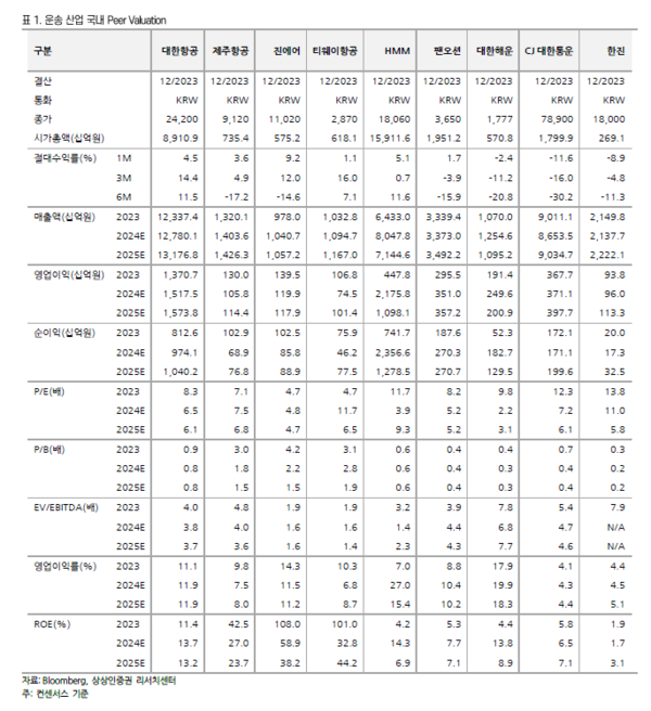 운송 업종 내 선호도는 항공 > 물류 > 해운 순으로 제시한다. 항공 산업은 견조한 여행 수요를 기반으로 팬데믹 이전을 상회하는 여객 수요가 지속될 전망이다. 내년 글로벌 항공기 인도량 역시 2018년 대비 88% 회복에 그치며 공급 증가 지연이 이어질 전망이며, 이에 따라 제한적인 국제선 운임 하락이 예상된다. 환율, 유가 등 매크로 변수 역시 내년 하향 안정화 전망이 우세하며, 그에 따른 항공사 손익 개선 역시 기대된다. 항공 산업은 기본 업황 외에도 국내 FSC 합병에 따른 시장 구도 및 업체별 경쟁력 변화에 따른 추가적 기회 요인이 존재할 전망이다.