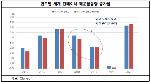 무역분쟁과 보호무역주의에 의한 해운수요 둔화 가능성은 매우 높은 것으로 평가된다.