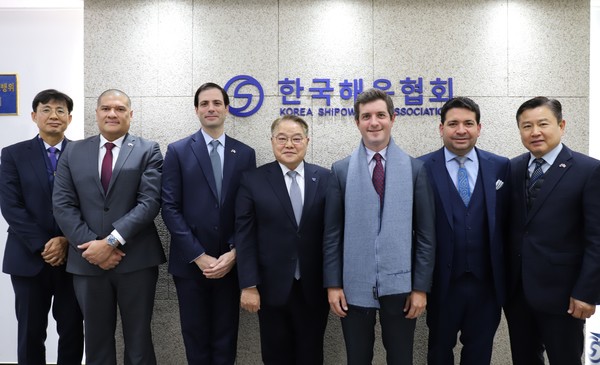 한국해운협회(회장 정태순)는 11월 27일(수) 해운빌딩 9층 회의실에서 파나마 당국의 Carlos Hoyos Boyd 대외무역부차관 및 신임 파나마 대사인 Diego Manuel Villanueva Martinelli와 한-파나마 양국 간 해운 관련 주요 관심사에 대해 논의하는 시간을 가졌다.