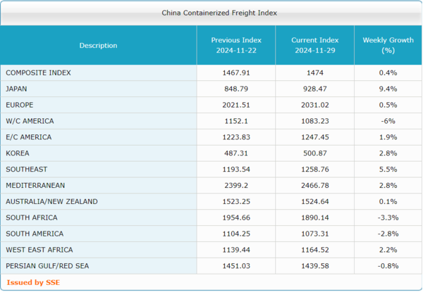 동남아항로는 5.5% 상승한 반면 중동항로는 0.8% 하락했다. 일본항로는 가장 높은 9.4%나 상승해 눈길을 끌었다. 한국항로는 2.8% 상승했다.