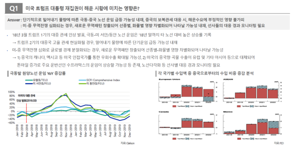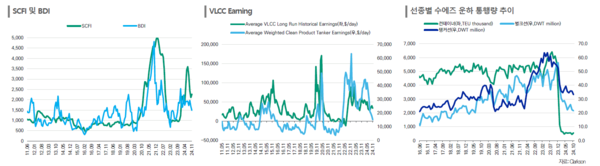 중국 관세리스크 및 경기부양책 효과는 모니터링이 필요하다. 컨테이너선의 경우 누적된 공급부담과 신조선 인도 스케줄 감안 시 시황 하락폭은 상대적으로 클 것으로 보인다. 단, 홍해 사태 지속 가정하 하락속도는 완만할 전망이다.