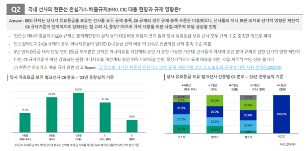 탱커선의 경우 홍해사태 및 러-우전쟁 지속, 낮은 신조선 공급부담 등 감안시 수급지표는 견고하고 시황하락시에도 평년대비 높은 수준의 운임유지가 예상된다.