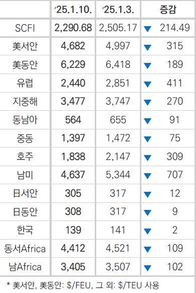 주요 항만에서의 물류 병목현상이 해소되고, 설연휴를 앞둔 계절적 요인이 결합된 결과로 연말 물량이 안정화되면서 단기적인 물동량 감소와 함께 운임하락이 가속화됐다.