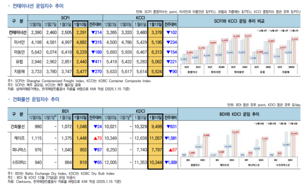 -미서안과 동안 모두 CCFI는 상승...한국항로, 중동항로 큰 폭 하락