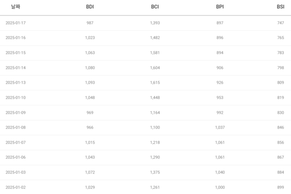 -건화물선운임지수 BDI는 1000p 아래로 하락