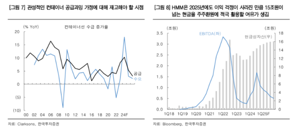 2020년대의 컨테이너 해운시장은 예측 불가능한 변수들이 지배하고 있다. 무슨 일이 벌어질지 모른다는 불확실성 탓에 HMM 투자를 망설여 왔지만 지금은 단기적으로 업사이드 리스크가 더 커졌다. HMM은 숨겨진 트럼프 수혜주다. 미국의 대중국 관세인상은 물류 혼란을 야기시켜 운임 상승요인이 되고 중국 선사에 대한 제재가 구체화될 경우 가장 가까운 경쟁사인 HMM은 반사이익이 예상된다. 올해도 실적 걱정이 사라진 만큼 15조원이 넘은 현금을 주주환원에 쓸 여유 역시 커졌다.