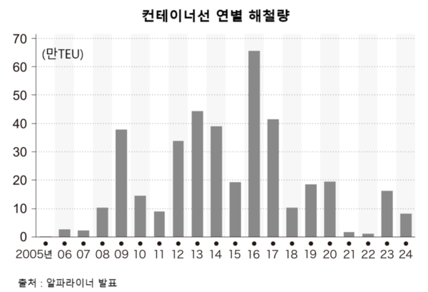 컨테이너선 해철량 연별 추이는 그래프와 같다.