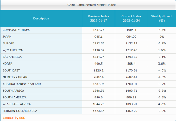 -SCFI는 전주대비 4% 하락...CCFI는 3.4% 내려