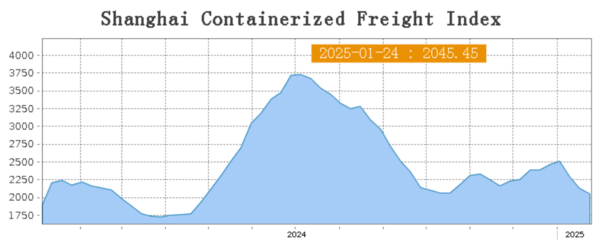 중국컨테이너운임지수 SCFI와 CCFI가 24일(금)도 동반 하락세를 이어갔다. 상하이항운교역소에 따르면 24일 스팟 컨운임 지표 SCFI(상하이발컨운임지수)는 2045.45p로 전주(2130.81p)보다 85.37p 하락헸다. 중장기 계약운임 지표 CCFI(중국발컨운임지수)는 1505.1p로 전주(1557.76p) 대비 3.4% 내렸다.