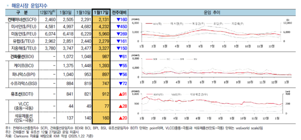 한편 건화물선운임지수 BDI는 급락세를 보여, 24일 800p선 마저 무너졌다. 24일 BDI는 774p를 기록해 전날 824p보다 6.1% 하락했다. 케이프사이즈운임지수 BCI는 1천p선도 붕괴돼, 983p를 기록했다.