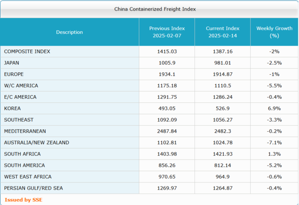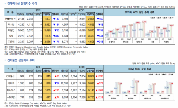한국항로 CCFI는 6.9% 크게 올라 눈길