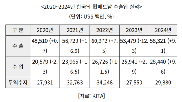 베트남은 한국의 3위 수출국, 7위 수입국, 3위 무역흑자국