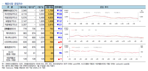 -CCFI, 중동항로 가장 큰폭 하락...전주대비 9.4% 급락