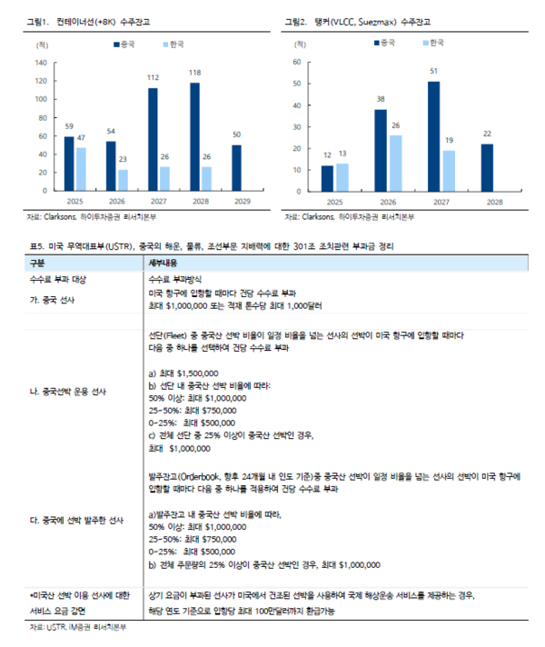 현재 대량의 선박을 중국에 발주해 놓은 글로벌 선사의 계약 취소 가능성도 있다. 계약 파기로 인한 선수금 몰취액보다 향후 미국 입항시 부과될 수수료가 더 클 수 있기 때문이다.