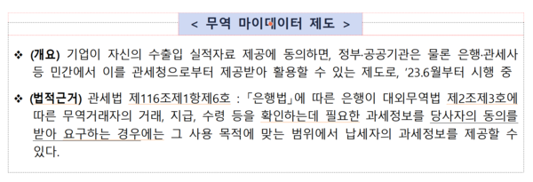 은행이 기업으로부터 정보제공 동의*를 받은 후, 관세청에 무역데이터 제공을 요청하면 해당 기업의 정보를 조회할 수 있게 된다.
