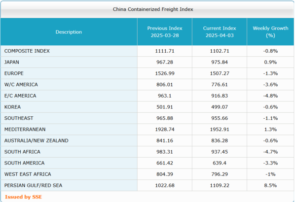 3일 CCFI는 1102.71p로 전주대비 0.8% 하락하는데 그쳤다. CCFI 항로별 추이를 보면 미서안항로는 3.6%, 미동안은 4.8% 각각 내렸다. 유럽항로는 1.3% 하락한 반면 지중해항로는 1.3% 상승했다. 동남아항로는 1.1% 내린 반면 중동항로는 8.5%나 올랐다. 한국항로는 0.6% 하락한 것으로 나타났다.