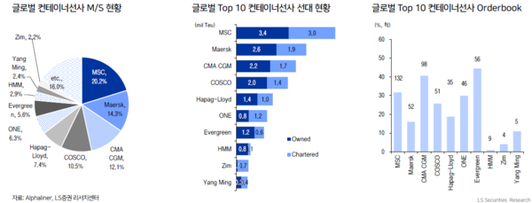 글로벌 선복량 1위 MSC는 선대 규모를 지속 확대하며 독자노선을 구축했다. 이스라엘의 non-Alliance 선사 Zim 또한 공격적인 추가 용선 확보로 선대규모가 기존 9위였던 양밍을 추월했다.