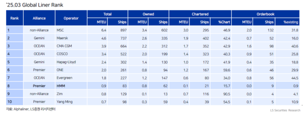선사간 경쟁구도는 격화 국면이다. 2025년 2월 2M(MSC+머스크)의 해체되고 제미나이 협력 얼라이언스(머스크+하파그로이드)가 출범했다.