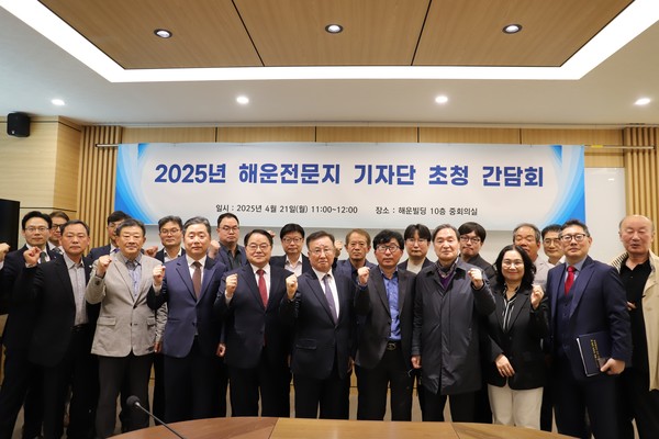 박정석 한국해운협회 회장은 4월 21일(월) 오전 11시 해운빌딩 10층 대회의실에서 해양수산부 출입 해운전문지 기자단과 간담회를 갖고 트럼프 행정부의 고관세 정책, 미 무역대표부(USTR)의 항만 입항료 부과 규제, IMO의 해운탄소세 부과, 화급한 선원 부족 해소, 톤세제 등 당면과제에 대해 소상히 설명했다.