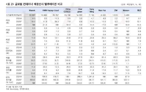반면 현재 컨센서스는 가이던스 하단에 불과하다. 시황 불확실성이 여전히 높지만 그 이상으로 시장 우려는 과도했다. 컨테이너 해운업계는 내년까지 감익 추세가 이어질 전망이나 올해 이익은 연초 기대 이상이다. 그만큼 주주환원에 쓸 수 있는 유휴현금이 더 늘어났다는 점에 주목할 필요가 있다고 최 애널리스트는 언급했다.