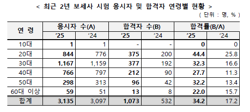 올해 보세사 시험 합격자 평균 점수는 69.3점이며, 최고 점수는 92점으로 나타났다. 20·30대 연령층이 전체 응시자의 약 64.1%(2,011명), 전체 합격자의 약 70.1%(752명)를 차지해 청년층의 보세사에 대한 관심이 높은 것으로 나타났다.
