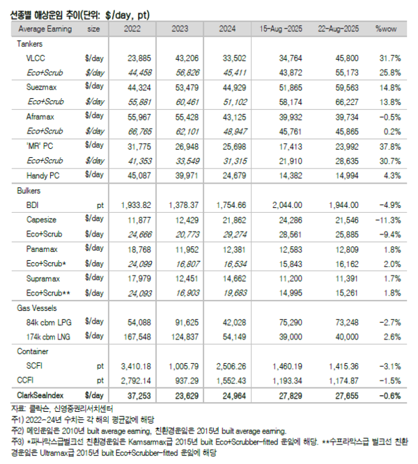 해상운임의 경우 탱커 운임이 강세를 보였다.